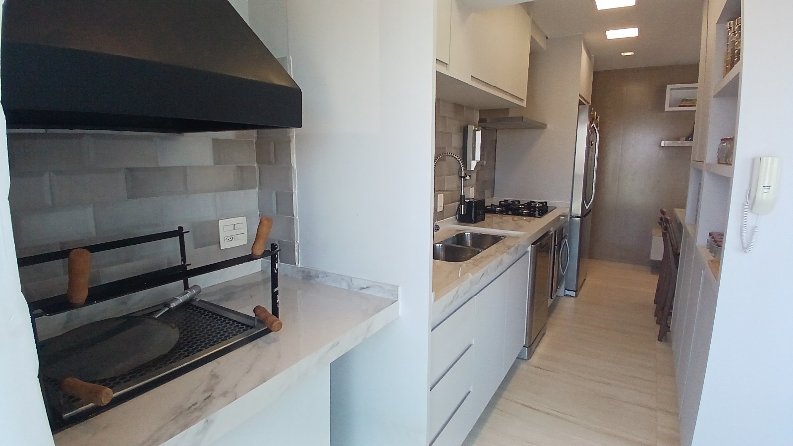- Cozinha com armários embutidos, oferecendo organização e praticidade