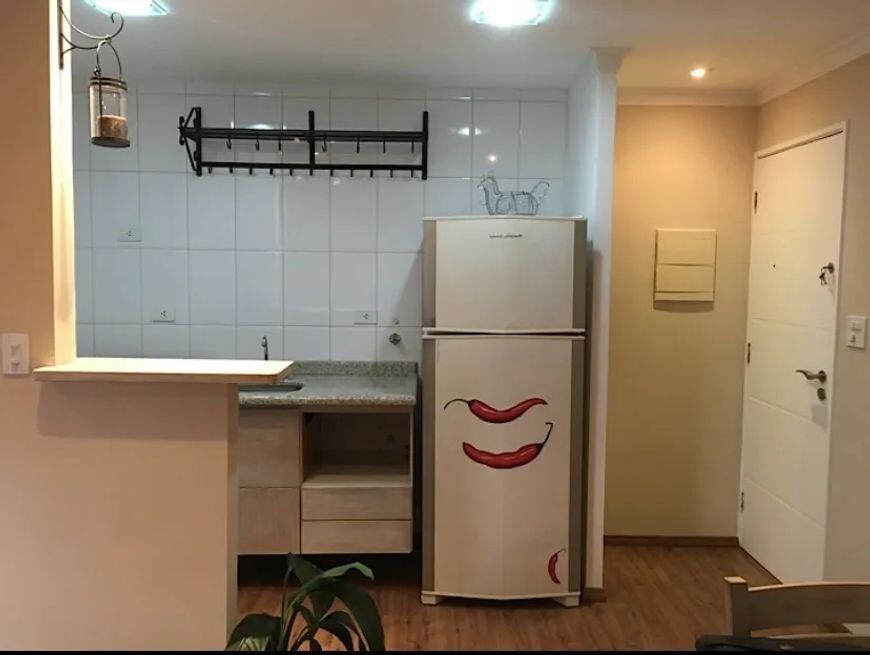 1 Dormitório, sendo 1 suíte1 Banheiro1 VagaGaragem Coberta1 Sala de TV1 Cozinha1 Sala de jantar1 Sala de estar1 Área de serviço