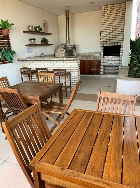 1 suíte, varanda gourmet conjugada a sala de estar, jantar e Tv, ar condicionado, banheiro social, generosa cozinha rica em armarios, área de serviço e 2 vagas de garagem, oferece ao futuro morador o conforto e comodidade que se busca.