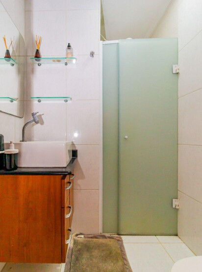 O condomínio por sua vez oferece itens de lazer como salão de festas, quadra poliesportiva e piscina.